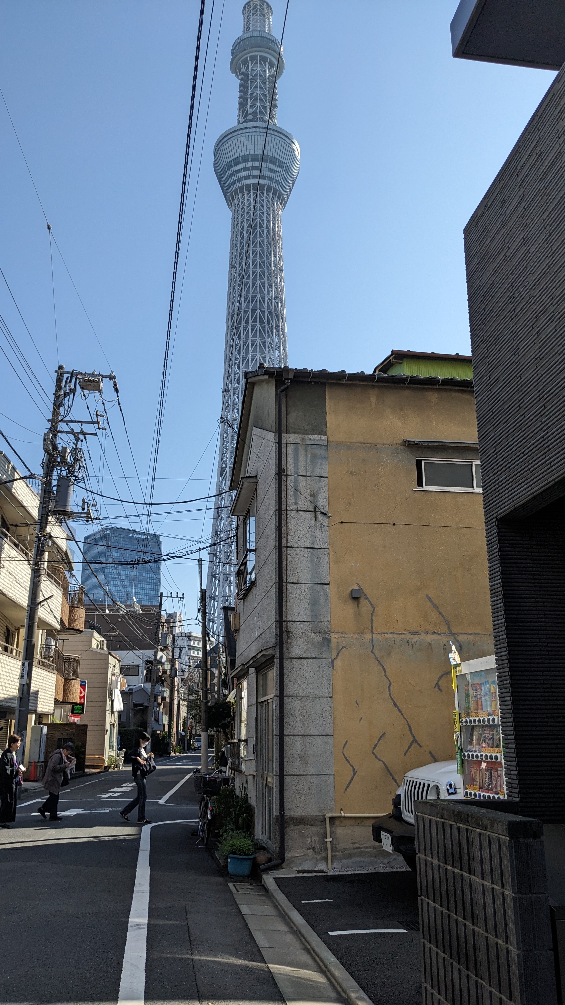 ボーナス自販機は博物館への途中で撮った。自販機の半分はある家の後ろにあって見えないけど、東京スカイツリーがほとんど完全にアレンジできた。